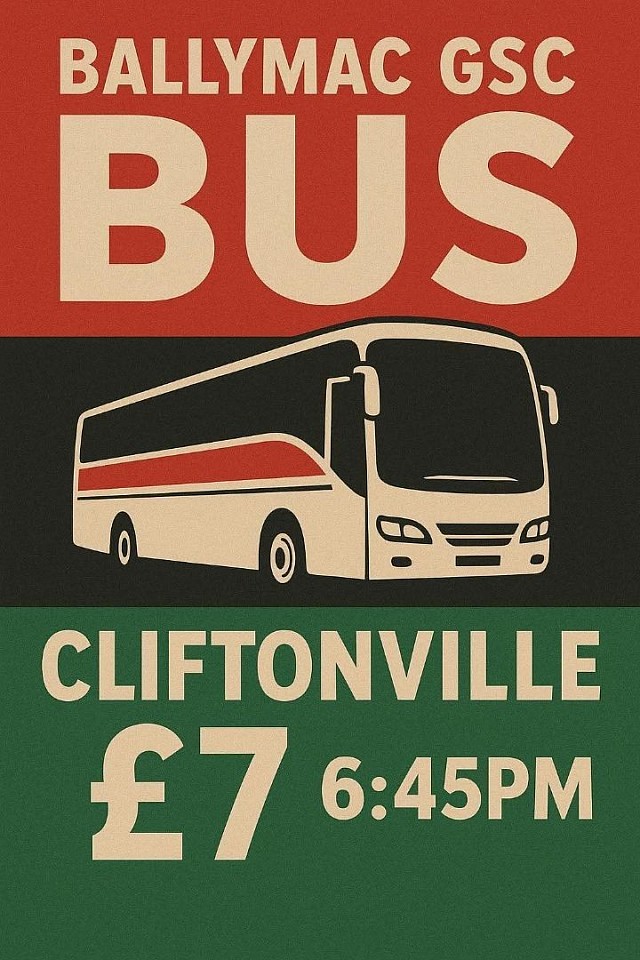 The BallymacGSC will be running a bus to Cliftonville on friday the 3rd of October. Leaving the clubrooms at 6.45pm costing £7. Please contact a member to book a seat.