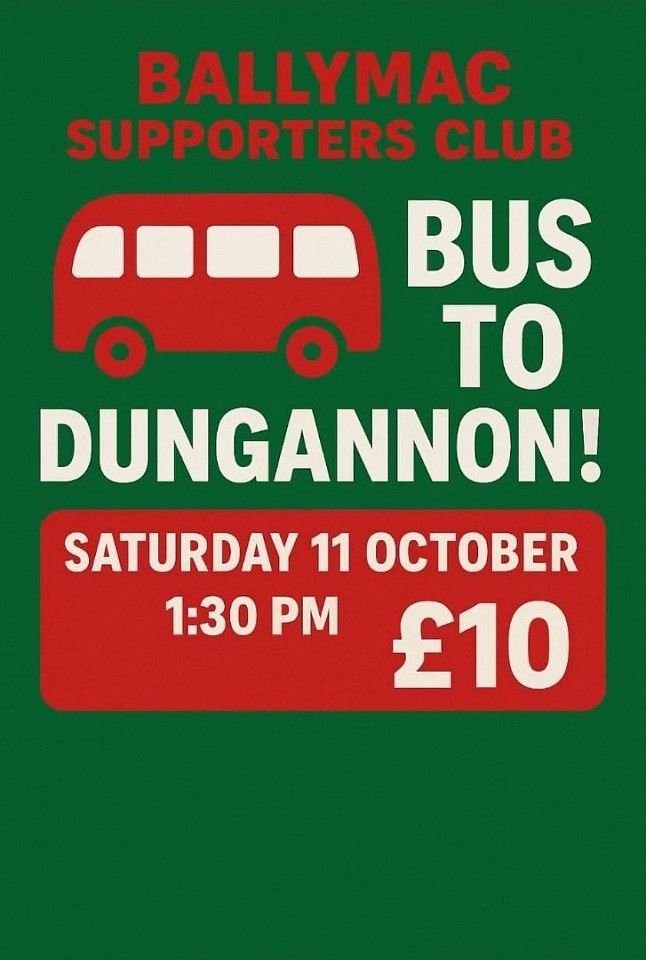 The BallymacGSC will be running a bus to Dungannon on saturday the 11th of October, leaving the clubrooms at 1.30pm costing £10. Please contact a member to book a seat!