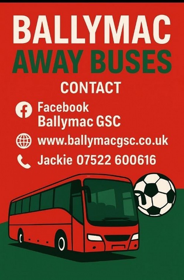 The BallymacGSC will be running a bus to Glenavon on Saturday the 8th of November, leaving the clubrooms at 1.45pm costing £9. Please contact a member to book a seat.